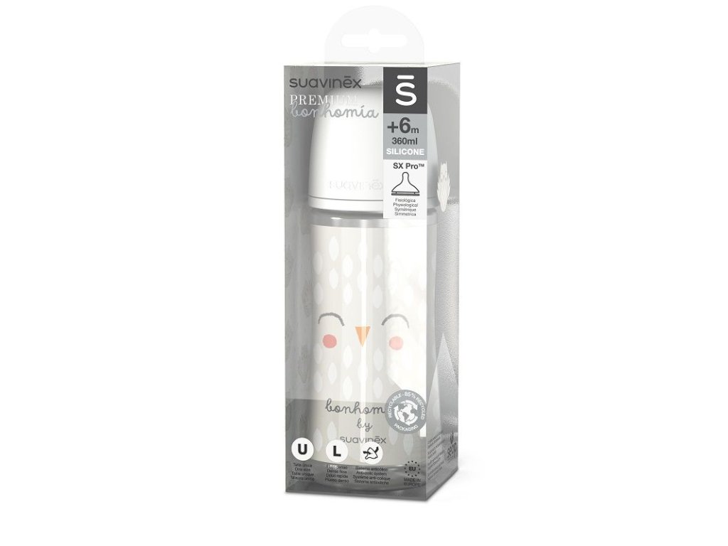SUAVINEX | Fľaša BONHOMIA 360 ml fyziologická SX PRO +6 LF - biela