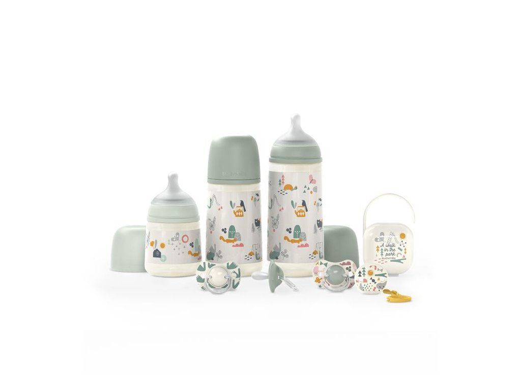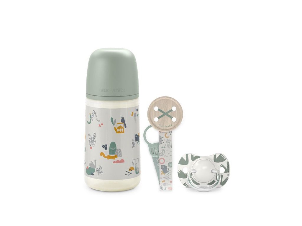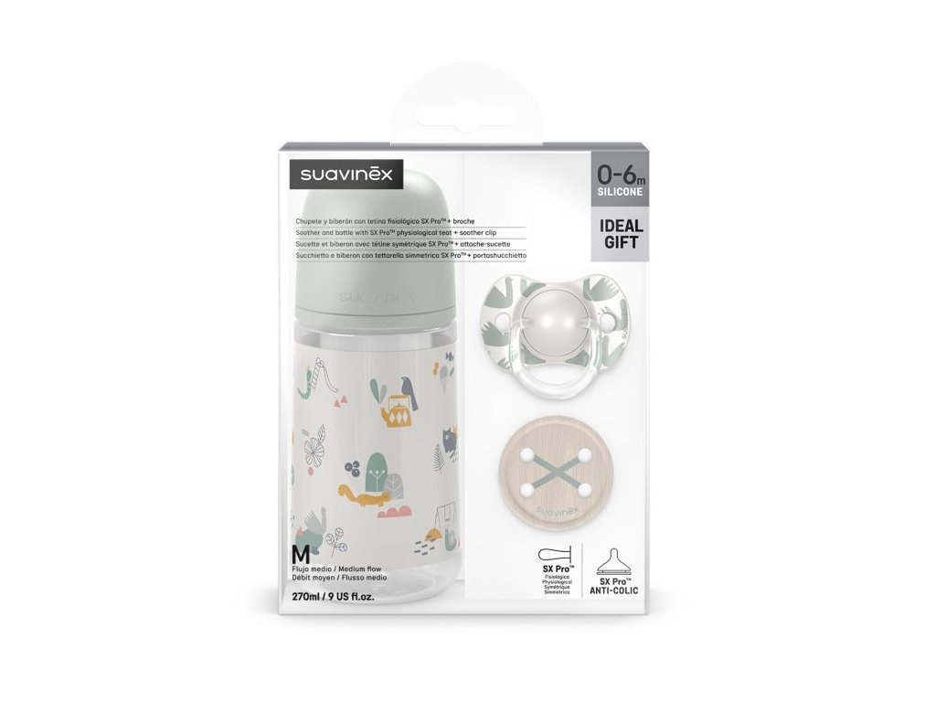 SUAVINEX | Sada fľaša 270ml + cumlík fyziologický 0/6m + klip Walk - zelená
