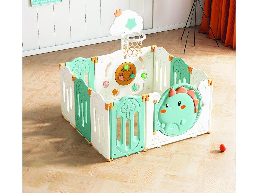Poskytnite svojmu dieťaťu bezpečné miesto na hranie a objavovanie. Ohradka je vyrobená z vysoko kvalitného HDPE polyetylénu. Hladké, zaoblené hrany sú špeciálne navrhnuté pre bezpečnosť vašich najmenších. Dvierka sa dajú bezpečne zamknúť, čo zaručuje maximálny kľud rodičom a maximálnu bezpečnosť najmenších. Ľahké skladacie panely sú navrhnuté pre pohodlné používanie, rýchlu montáž a skladovanie. Protiskluzové prísavky zaisťujú väčšiu stabilitu. Vstavaný interaktívny panel podporuje zmyslovú hru a obsahuje basketbalový kôš a loptu, s ktorými sa vaše dieťa bude skvele zabávať a môže ich používať na trénovanie koordinácie a reflexov. Povrchy sú ideálne na každodenné použitie/ľahko sa čistia – vhodné na použitie v interiéri aj exteriéri.