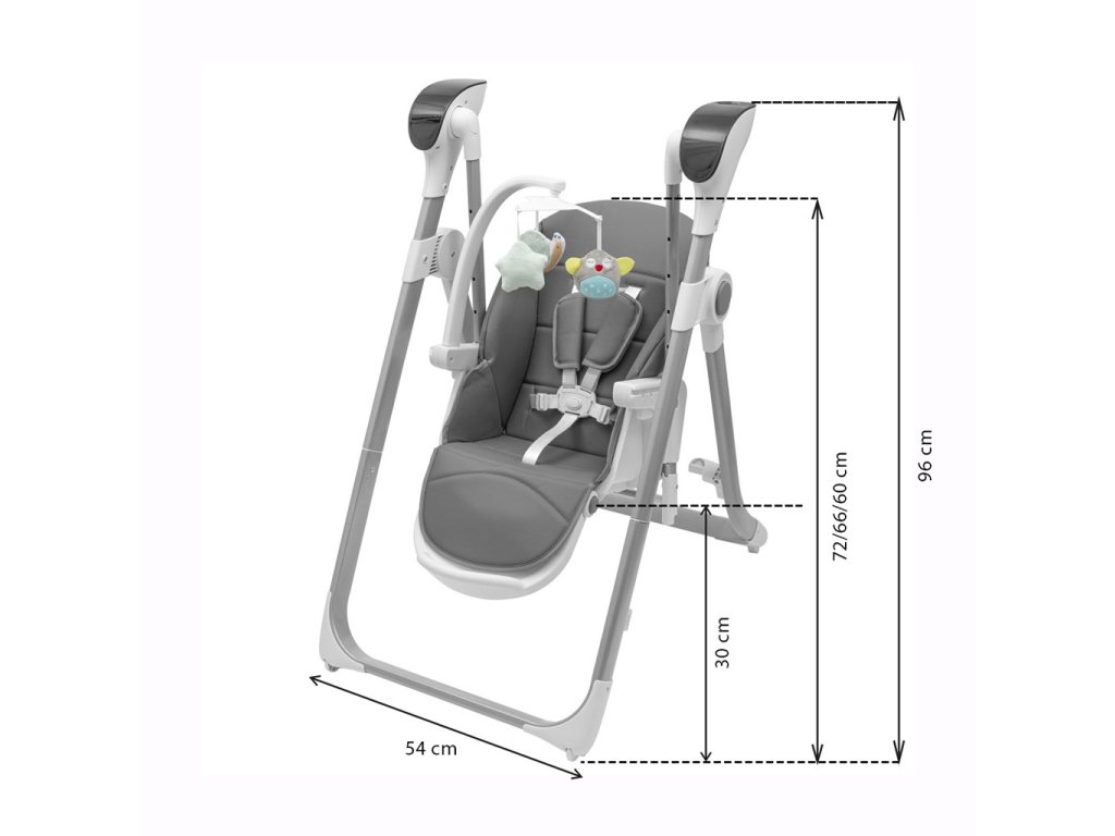 Moderná a funkčná stolička na kŕmenie a hojdačka 2v1 SMART je ideálnym riešením pre deti, ktoré dokážu samostatne sedieť, až do veku 3 rokov alebo dosiahnutia maximálnej hmotnosti 15 kg. Produkt spĺňa európske bezpečnostné normy, čo zaručuje komfort a bezpečie počas jedla aj odpočinku
