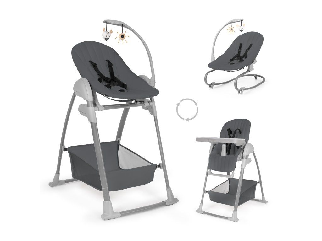 Hauck Jedálenský Set Sit N Relax 3v1 (stolička, sedátko, kresielko), Dark Grey