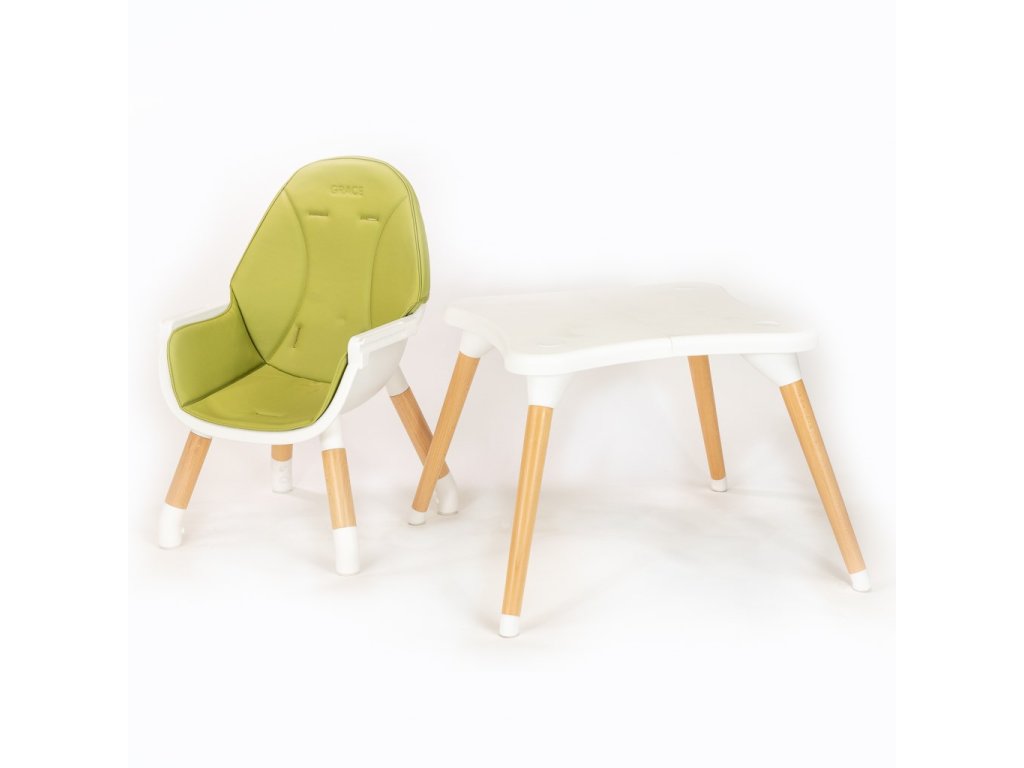 Moderná a originálna detská jedálenská stolička Grace New Baby. Kombinácia bukového dreva a moderných farieb zaručuje jedinečný design a minimalizmus. Jedálenská stolička Grace 3v1 je perfektnou voľbou pre prvú detskú stoličku. Detská stolička kombinuje 3 funkcie: vysokú jedálenskú stoličku na kŕmenie, nízku detskú stoličku a sadu stolček + stolička.