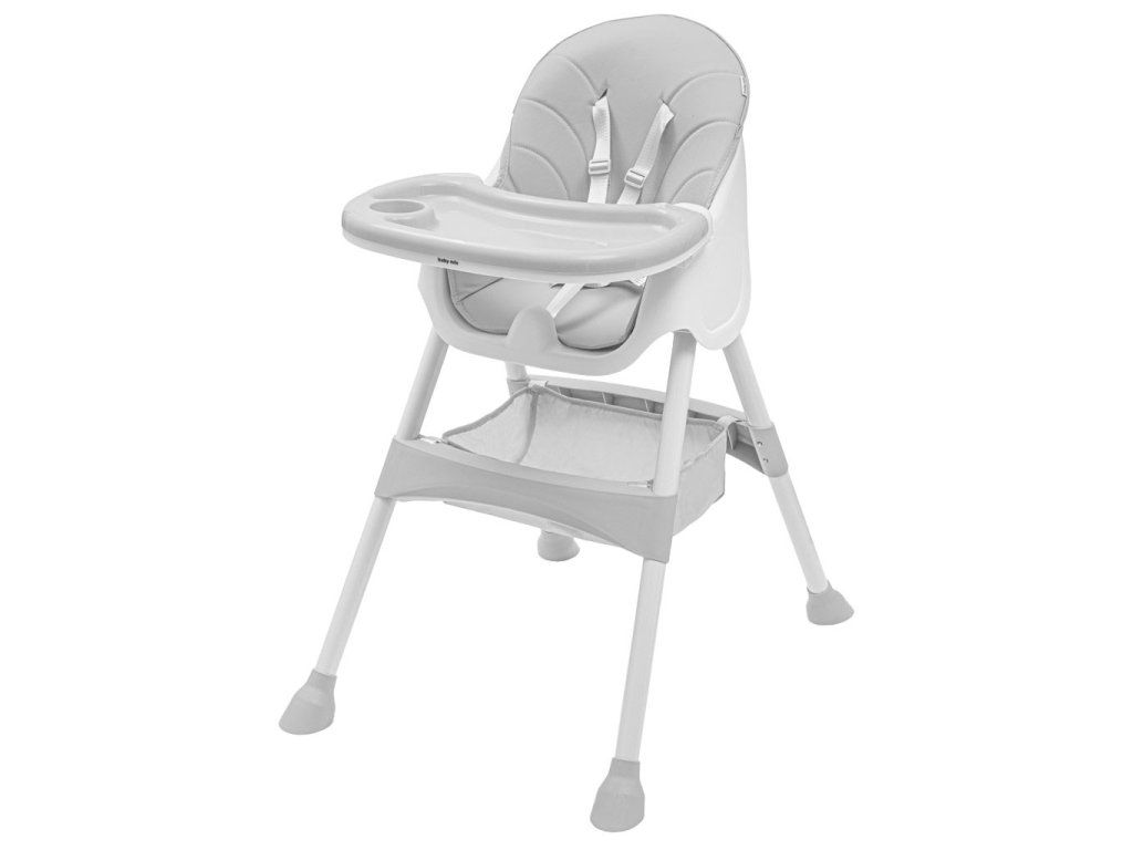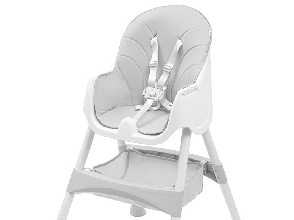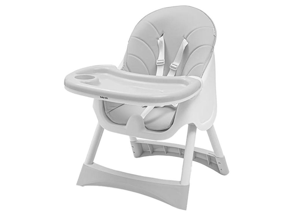 Vďaka 5-bodovému pásu bude vaše dieťa v bezpečí a opierka nôh bude pohodlná. Poťah možno kedykoľvek vyčistiť vlhkou handričkou. Jedálenská stolička možno ľahko premeniť na nízku stoličku odstránením spodnej časti nôh. Textilný košík je dostatočne priestranný na uloženie nevyhnutných vecí, ako sú vlhčené obrúsky, látkové plienky alebo obľúbené malé hračky. Protišmykové nožičky zabraňujú náhodnému prevráteniu stoličky. Jedálenská stolička Baby Mix možno používať aj ako vysokú stoličku.