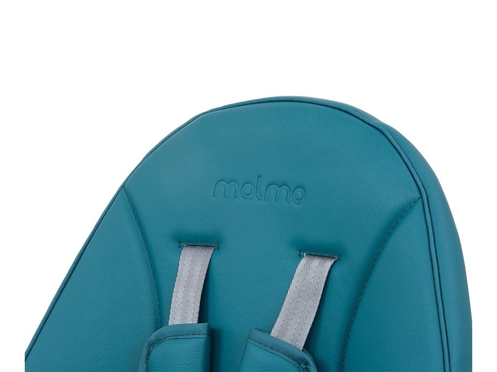 Päťbodové bezpečnostné pásy so širokými a mäkkými ramennými vypchávkami chránia dieťa pred odreninami. Čalúnenie stoličky Malmo z ekokože je odolné proti znečisteniu a ľahko sa čistí. Tácka má priehlbinu, ktorá zabraňuje skĺznutiu predmetov.