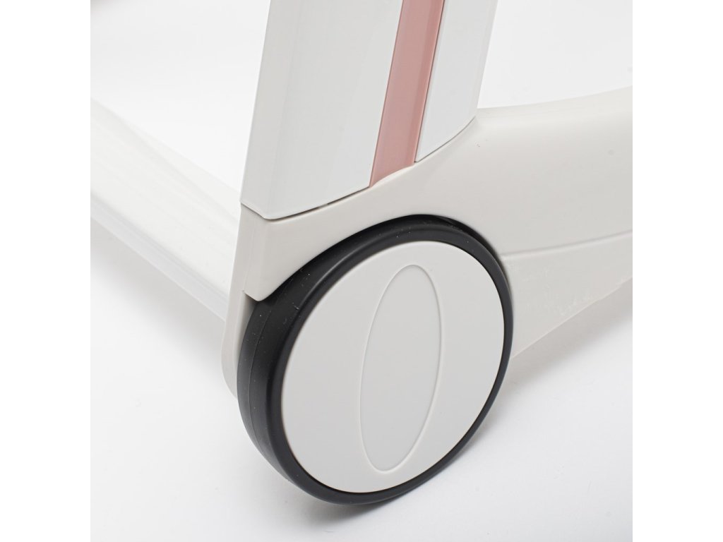 -Stolička je vybavená dvoma brzdovými kolieskami a dvoma gumovými nožičkami