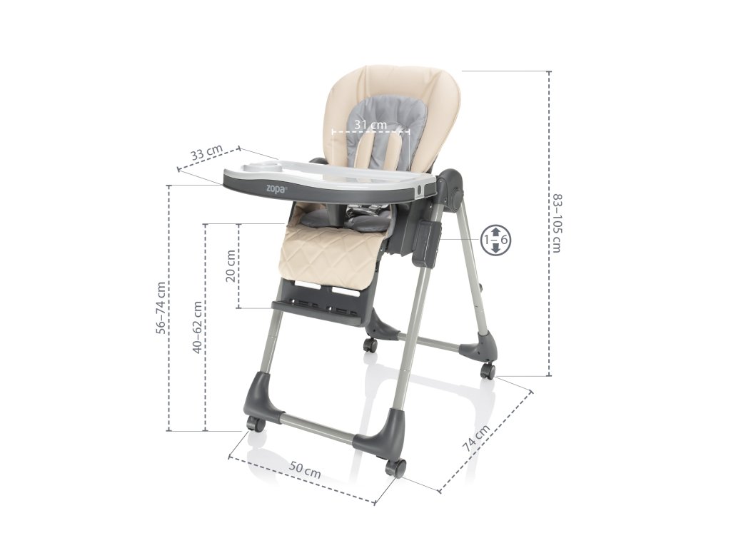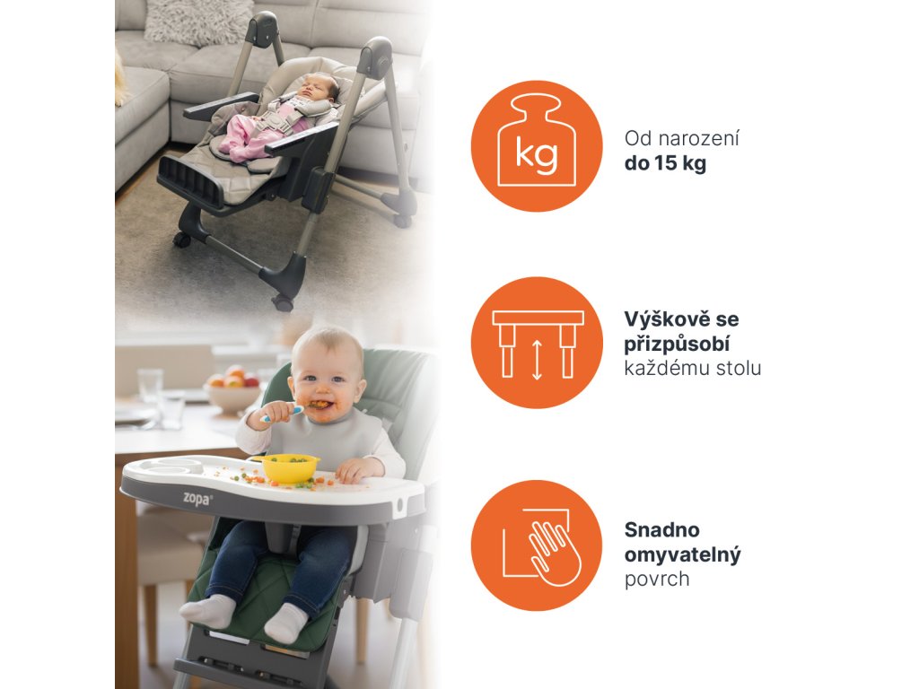 nastavenia výšky prispôsobí každému stolu. Vďaka 3 polohám chrbtovej opierky, 3