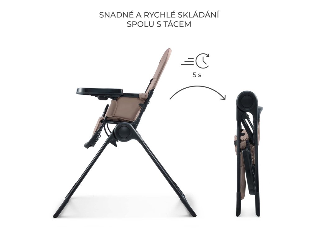 Zjednodušte si každodenné kŕmenie a vytvorte pohodlný priestor pre vaše dieťa bez kompromisov. BINCI je skladacia jedálenská stolička, ktorú zložíte jediným pohybom – bez nutnosti demontáže tácky. Je ľahká, stabilná a kompaktná, takže ju ľahko uložíte aj prenesiete. Vďaka nastaviteľnej tácke, 5-bodovým bezpečnostným pásom a pevnej konštrukcii je ideálnou voľbou pre každý deň – doma aj na cestách.Vlastnosti: