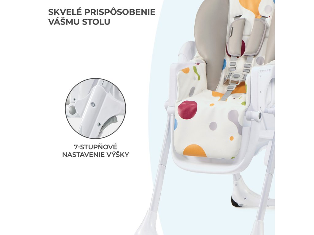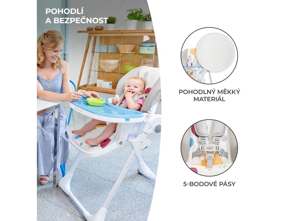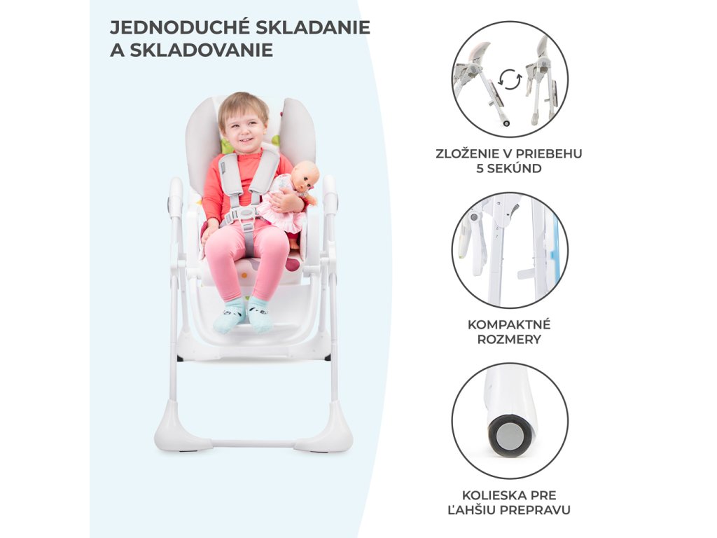 - stabilná a bezpečná vysoká stolička na kŕmenie