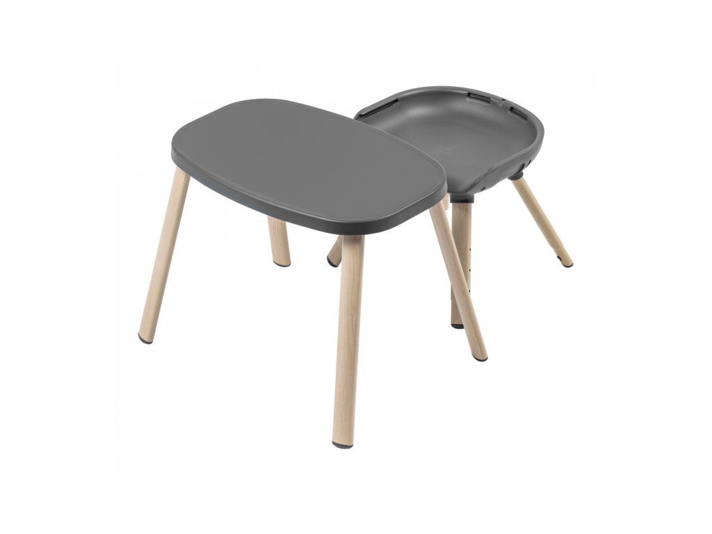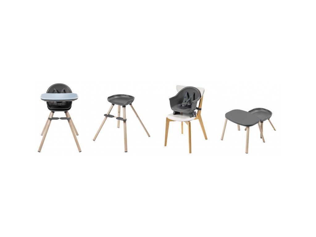 Modulárne prevedenie ponúka rôzne varianty použitia. Vysokú stoličku pre najmenšie deti môžete používať s jedálenským pultom alebo samostatne pri stole. Sedák je možné použiť samostatne ako podsedák na klasickú stoličku, nastaviteľné nožičky umožňujú nastavenie podľa výšky dieťaťa. Podsedák je možné používať s jedálenským pultom alebo samostatne pri stole. V staršom veku dieťaťa stoličku ľahko premeníte na stolček so stoličkou.
