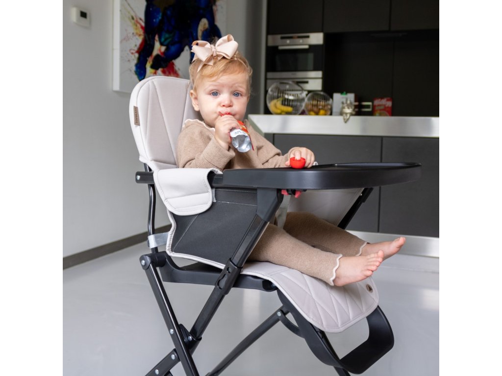 Praktická jedálenská stolička je vybavená priestranným, odnímateľným táckou.