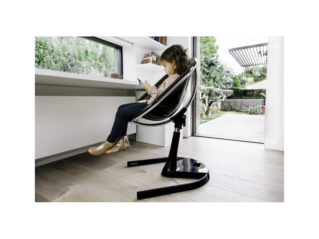 Štýlová stolička Mima Moon je to pravé pre milovníkov súčasného špičkového dizajnu. Svojím riešením 3v1 umožní dieťaťu byť už od narodenia až do školského veku súčasťou rodinného stolovania. Vďaka rôznym možnostiam náklonu a voliteľnému vkladaciemu polstrovaniu je vhodná pre bábätká od narodenia. S odnímateľným pultom a opierkou nôh je použiteľná ako stolička na kŕmenie pre batoľatá od 6 mesiacov. Vybratím vnútorného sedáka stoličku ľahko premeníte na stoličku pre väčšie deti, ktoré ju môžu používať samostatne pri stole. Stolička je veľmi jednoducho výškovo nastaviteľná a vo svojej maximálnej výške sa hodí aj ku kuchynským barovým pultom. Pevná a stabilná konštrukcia je zárukou bezpečia pre dieťa. Kolieska Easy-Glide uľahčujú presúvanie stoličky v interiéri.