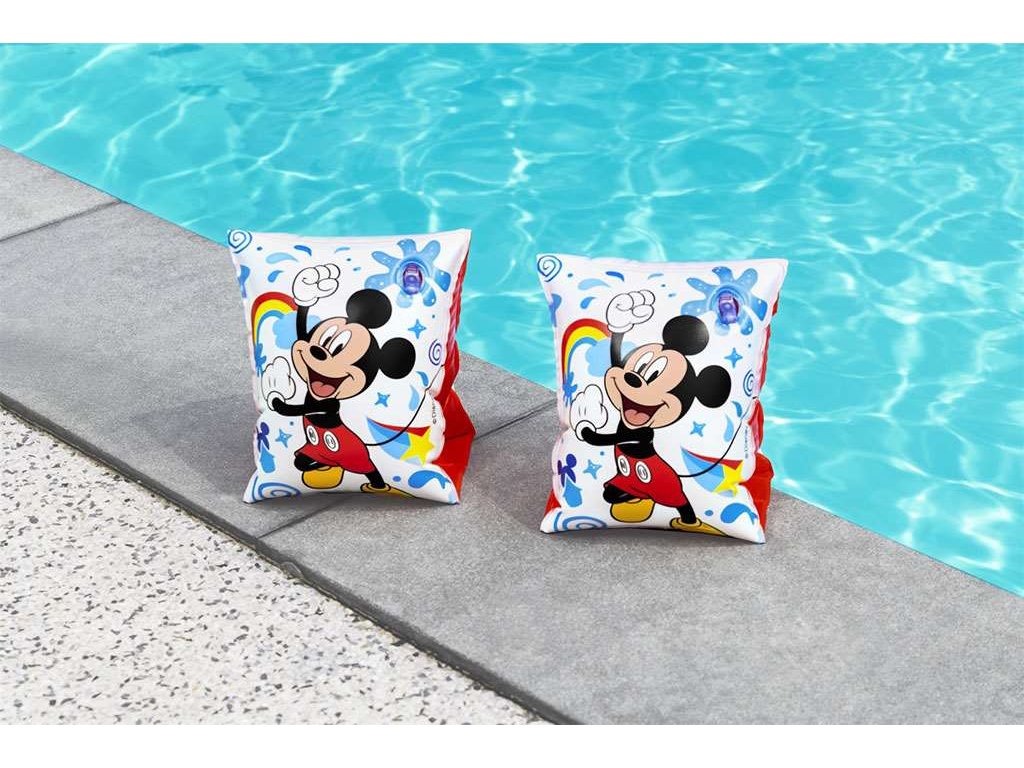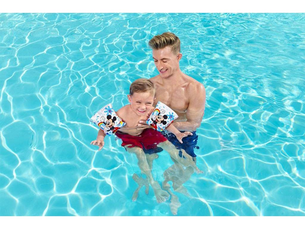 Detské nafukovacie rukávniky Bestway. Farebné, nafukovacie plávacie rukávy s motívom Mickey. Určené pre deti od 3 do 6 rokov. Rozmery: cca 23x15 cm. Zloženie: PVC.Dodatočné parametre