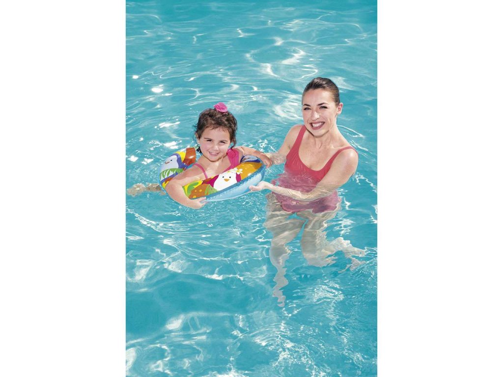Upozorňujeme, že kruh by malo dieťa používať pod dohľadom dospelej osoby a do hĺbky, v ktorej sa dotýka dna bazéna alebo inej vodnej plochy.