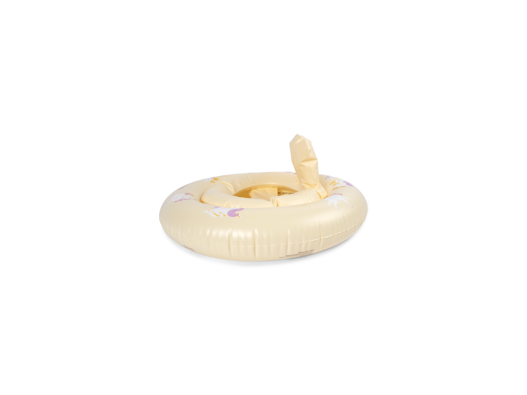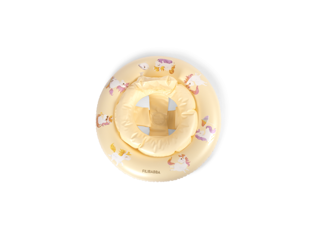 Detské šantenie vo vode je jedným z najkrajších prvých zážitkov! S detským plávacím kruhom si užijete pobyt pri mori či bazéne ešte viac – vaše bábätko môže objavovať vodu vlastným tempom, bezpečne po vašom boku. Váš dokonalý spoločník pri kúpaní má praktické sedadlo a chrbtovú opierku, ktoré poskytujú vášmu dieťatku bezpečnú oporu a pohodlie. Plavecký kruh je nafúknutý bezpečnostným ventilom, ktorý sa zasúva do kruhu a neprekáža pri vodných radovánkach. Koleso na kúpanie pre bábätká je vyrobený z obzvlášť kvalitného PVC s hrúbkou 0,25 mm. Objavte čarovný detský motív. Očarujúce jednorožce sa kĺžu po dúhach a jemne tancujú medzi vlnami, zatiaľ čo zvedavý malý narval vykúka z trblietavého mora. Na jemnom žltom pozadí sa rozvíja snová letná krajina plná fantázie a úžasu. UPOZORNENIE: Kruh na plávanie pre bábätká nie je prostriedok na záchranu života a nechráni pred utopením. Preto by mal byť kruh na plávanie pre bábätká používaný len pod stálym a kompetentným dohľadom dospelej osoby. Nikdy nenechávajte deti bez dozoru vo vode alebo v jej blízkosti. Nikdy nenechávajte tento výrobok vo vode alebo v jej blízkosti, keď sa nepoužíva. Počas používania sa držte ďalej od okraja bazéna alebo akejkoľvek prekážky. Nepoužívajte tento výrobok, keď je veterno alebo vo vode so silným prúdom. Vlastnosti:- Navrhnuté s praktickým sedadlom a operadlom, ktoré vášmu dieťatku poskytujú bezpečnú oporu a pohodlie