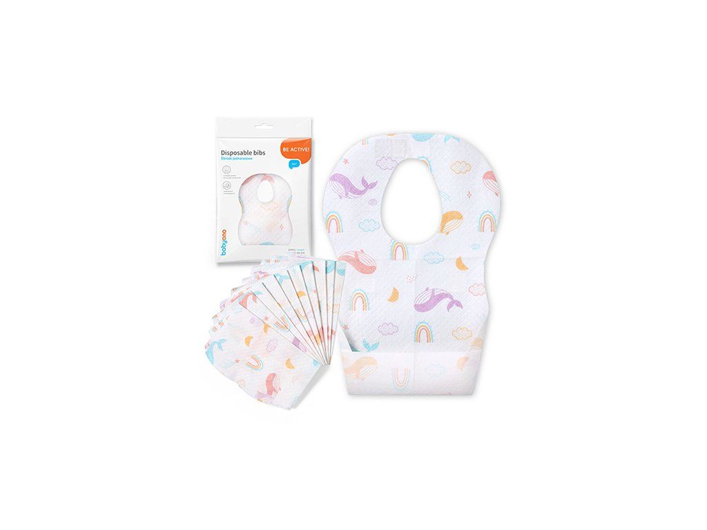 Pripravte sa na jedenie bez nečistôt s jednorazovými detskými podbradníkmi a vyhnite sa stresu z kŕmenia dieťatka kdekoľvek ste. Podbradníky sú mäkké, pevné a majú vodoodolnú podkladovú vrstvu, ktorá chráni oblečenie vášho dieťatka pred zašpinením. Majú tiež vrecko na omrvinky a zvyšky jedla. Jednorazové podbradníky sa skvele hodia na použitie doma, ako aj na cestách. Sú skvelou alternatívou k tradičným podbradníkom a pomôžu ochrániť oblečenie vášho dieťatka pri skúšaní nových potravín.Vždy po ruke
