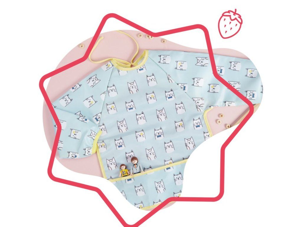 - s veľkým vreckom na zachytenie popadaného jedla počas kŕmenia