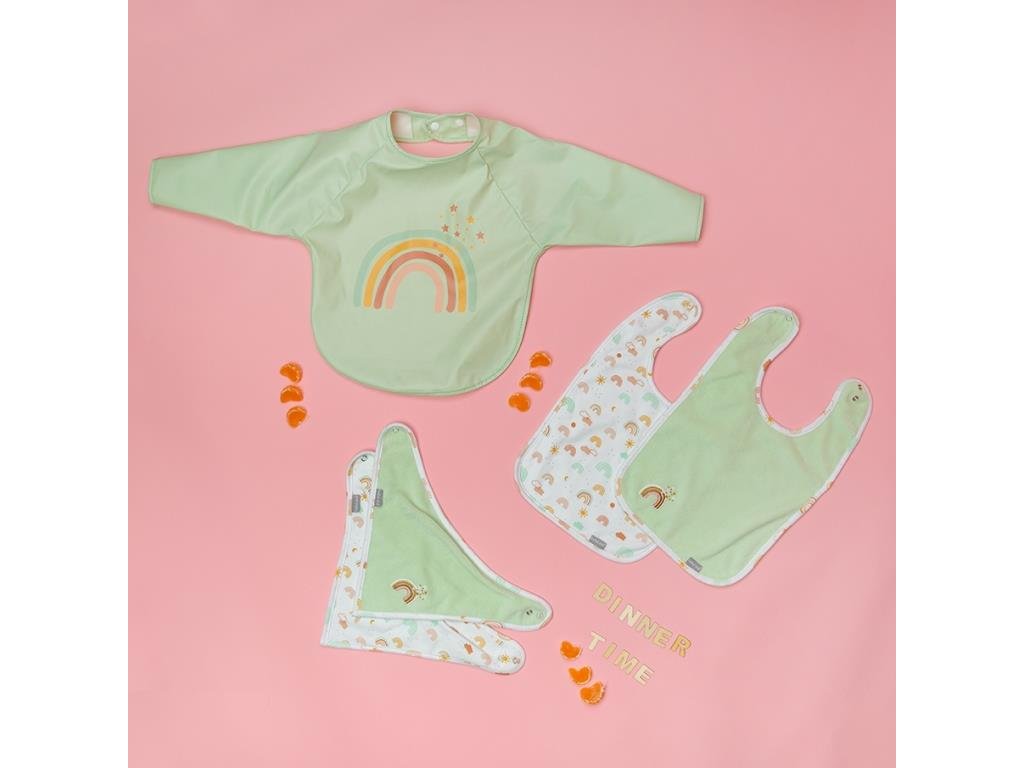 Pri každom jedle potrebujete ochrániť oblečenie vášho bábätka pred znečistením a pritom ho alebo ju nijako obmedzovať v objavovaní bohatstva chutí. Poslúžia vám trendy podbradníky, uzatvárateľné na jemné druky. 2 ks v balení.