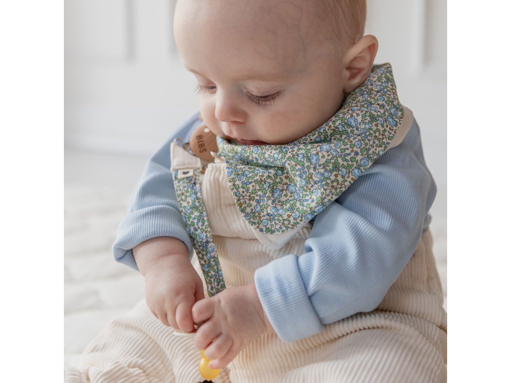 BIBS x LIBERTY je exkluzívna kolekcia najobľúbenejších BIBS produktov s potlačou Liberty. Liberty inšpiruje svet svojou výstrednosťou, nadčasovou eleganciou a prepožičiava svoje originálne vzory luxusným módnym značkám už od roku 1875. V kolekcii BIBS x LIBERTY sme spojili svoje sily, aby sme Vám priniesli produkty, ktoré oslavujú dedičstvo oboch značiek. BIBS x LIBERTY slintáčiky sú vyrobené zo 100%-nej organickej BIO bavlny. Bavlnený úplet (jersey) je jemný a poddajný. Kvalitu použitého materiálu spoznáte na prvý dotyk. Slintáčik je dvojvrstvový, vďaka čomu má skvelé savé vlastnosti a bude tak perfektným pomocníkom pri tečúcich slinkách či mliečku. Slintáčiky majú všestranné využitie. Spoľahlivo odsajú nie len stekajúce slinky, ale poslúžia aj pri kŕmení, zahrejú hrdielko v chladnom počasí a sú pekným módnym doplnkom detského outfitu. Roztomilým detailom je malé vrecúško na cumlík, ktoré detičky určite využijú aj na schovávanie svojich drobných pokladov. Slintáčik ľahko farebne doladíte s obľúbenými BIBS cumlíkmi aj s klipmi na cumlíky. Slintáčiky majú dve veľkosti pohodlného cvočkového zapínania. Zloženie : 100%-ná organická BIO bavlna Údržba : Pranie na 30°C v práčke, jemný program. Nečistiť chemicky, nesušiť v sušičke. Používanie aviváže môže znižovať absorpčnú schopnosť.Dodatočné parametre
