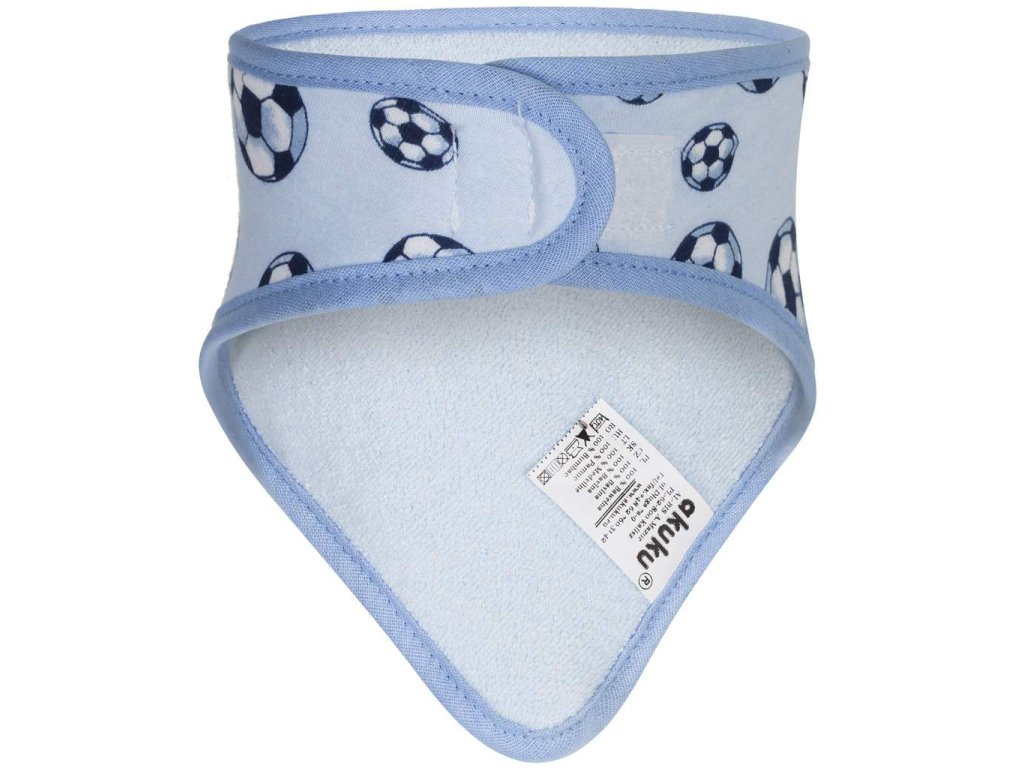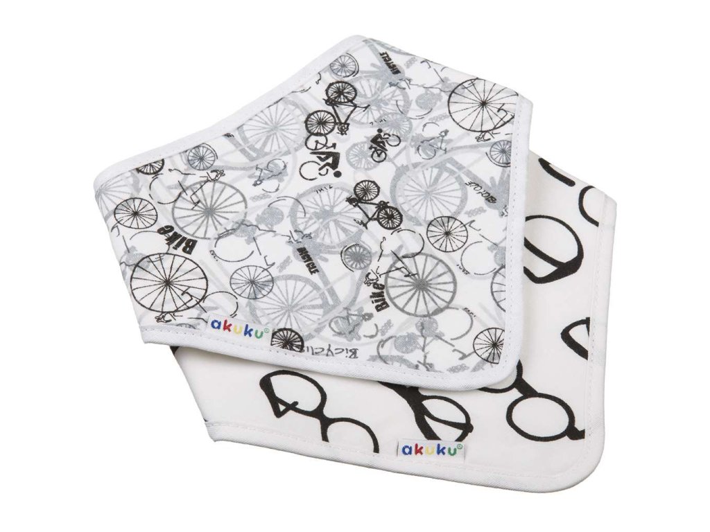 Praktický detský podbradník-šatka Akuku. Podbradník s jednou vrstvou z jemnej froté bavlny a druhou vrstvou hladkej bavlny, chráni ako citlivú detskú pleť, tak aj oblečenie pred zašpinením. Podbradník je vhodný pre malé deti, ktorým rastú zúbky a nadmerne slintajú, a tiež slúži ako módny doplnok k oblečeniu. Praktické zapínanie na suchý zips. Zloženie: 100% bavlna. Rozmery: 38 cm (obvod okolo krku) x 16 cm (dĺžka od krku). Sada obsahuje 2 šatky.Dodatočné parametre