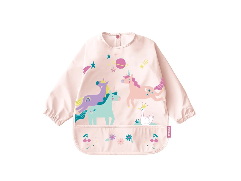 Podbradník s dlhým rukávom Miniland je ideálnym riešením pre batoľatá, ktoré sa učia jesť a objavujú svet chutí. Dizajn tohto podbradníka je zameraný na maximálnu funkčnosť a pohodlie, aby uľahčil každodenné kŕmenie a zároveň chránil oblečenie dieťaťa pred znečistením. Dlhé rukávy zabezpečujú plnú ochranu pred škvrnami a elastické manžety na zápästiach zabraňujú vniknutiu jedla do rukávov.