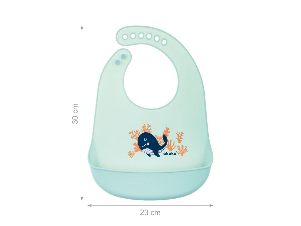 Silikónový podbradník AKUKU je praktický a pohodlný spôsob, ako ochrániť oblečenie vášho dieťaťa pred zašpinením. Má praktickú kapsu, ktorá zabraňuje vypadávaniu zvyškov jedla. Nastaviteľné zapínanie uľahčuje každej mamičke prispôsobiť veľkosť podbradníka svojmu dieťaťu. Bude sa vám hodiť doma aj na prechádzkach. Podbradník je vyrobený zo 100 % ľahkého a bezpečného silikónu. Jeho zloženie je úplne bezpečné a neobsahuje žiadne látky, ktoré by mohli podráždiť jemnú detskú pokožku. Je mimoriadne mäkký a príjemný na dotyk.