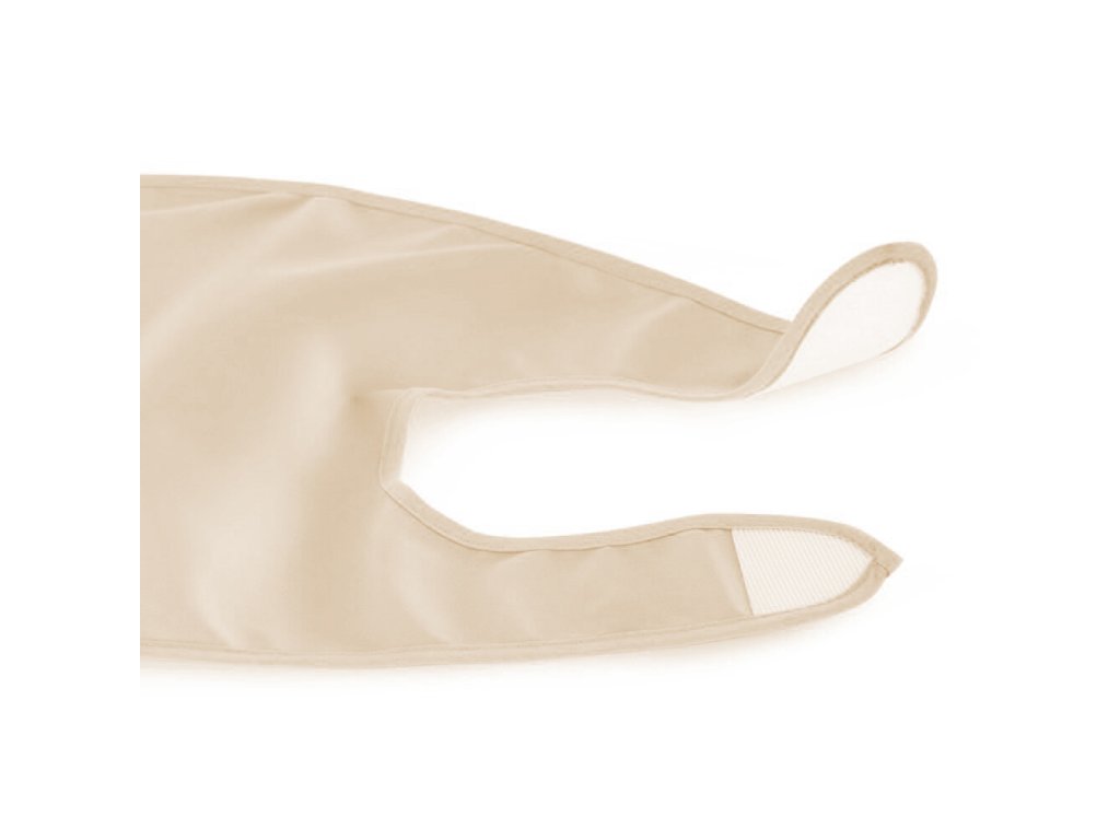 Podbradník je vybavený vreckom na omrvinky, ktoré pomáha udržať poriadok a komfort počas jedla. Vďaka nastaviteľnému zapínaniu na jemný suchý zips sa ľahko prispôsobí krku dieťaťa. Po každom použití ho stačí utrieť vlhkou handričkou a je opäť čistý.