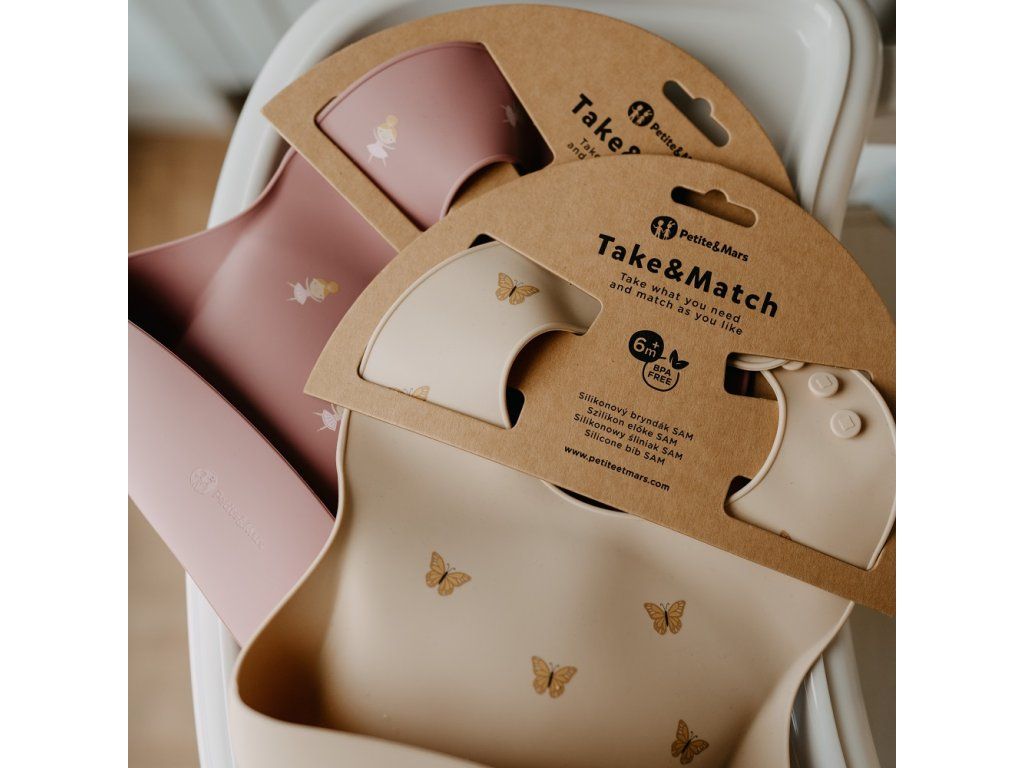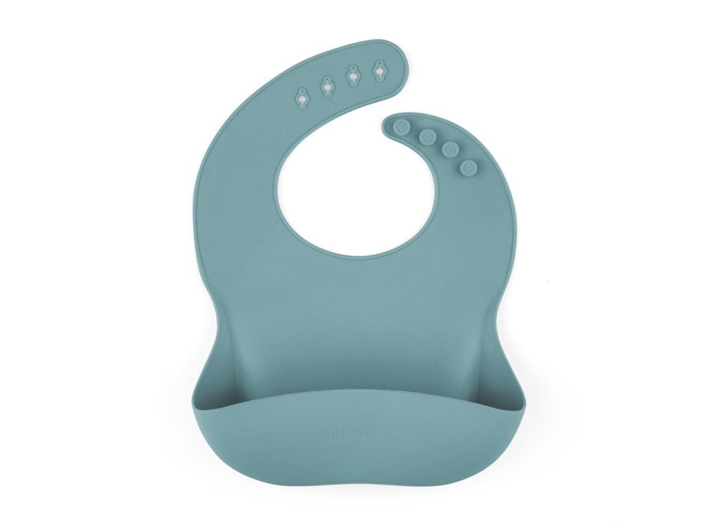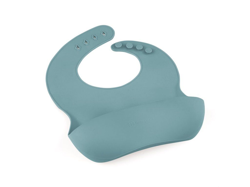 Podbradník je vyrobený z potravinárskeho silikónu bez obsahu BPA. Je určený pre malé deti od 6 mesiacov, ktorým sa zavádzajú prvé príkrmy, a pre tie, ktoré sa už úspešne učia samostatne jesť. Má nastaviteľné zapínanie, ktoré umožňuje prispôsobiť ho veľkosti krku dieťaťa. To znamená, že podbradník rastie spolu s dieťatkom. Vďaka ergonomickému tvaru a mäkkému materiálu sa podbradník pohodlne nosí a neobmedzuje pohyb dieťaťa pri jedení. Dá sa tiež zrolovať, a preto nezaberá veľa miesta v taške, keď idete na prechádzku alebo na výlet.