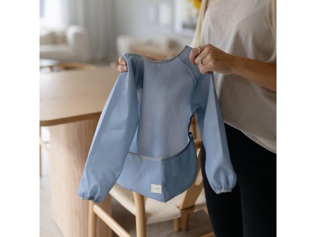 Podbradník s dlhým rukávom od Mushie pre chvíle jedla bez neporiadku! S týmto praktickým podbradníkom z vodeodolného materiálu sa vyhnete neporiadku počas jedla - má široké vrecko, ktoré ľahko zachytí jedlo a zabráni tomu, aby vytvoril neporiadok na podlahe alebo na oblečení. Podbradník má zapínanie na suchý zips na zadnej strane krku, čo zaisťuje pohodlné nosenie. Veľkosť je vhodná pre deti vo veku 6-24 mesiacov. Podbradník sa ľahko čistí, ale je tiež úplne bezpečný na pranie v práčke Mushie podbradník s dlhým rukávom – detaily:- Veľkosť: 6-24 mesiacov (jedna veľkosť)