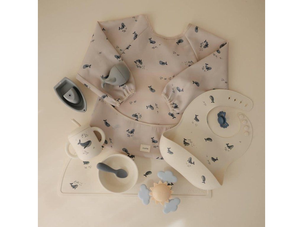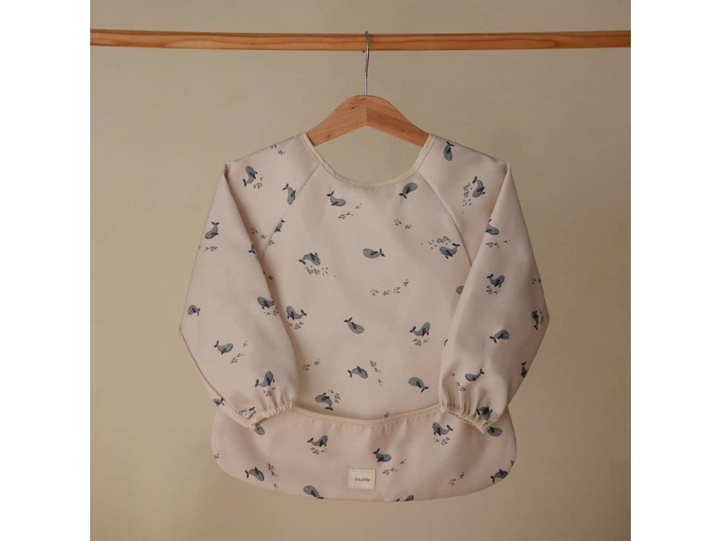 Podbradník s dlhým rukávom od Mushie pre chvíle jedla bez neporiadku! S týmto praktickým podbradníkom z vodeodolného materiálu sa vyhnete neporiadku počas jedla - má široké vrecko, ktoré ľahko zachytí jedlo a zabráni tomu, aby vytvoril neporiadok na podlahe alebo na oblečení. Podbradník má zapínanie na suchý zips na zadnej strane krku, čo zaisťuje pohodlné nosenie. Veľkosť je vhodná pre deti vo veku 6-24 mesiacov. Podbradník sa ľahko čistí, ale je tiež úplne bezpečný na pranie v práčke. Mushie podbradník s dlhým rukávom – detaily:- Veľkosť: 6-24 mesiacov (jedna veľkosť)