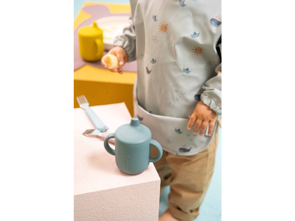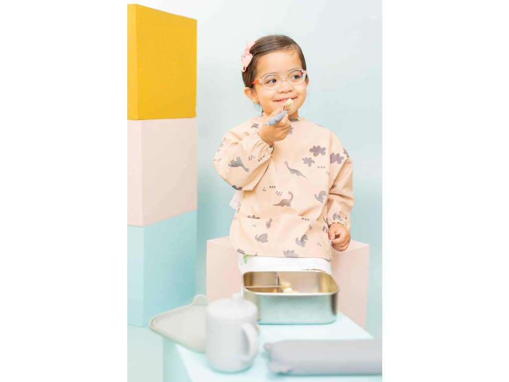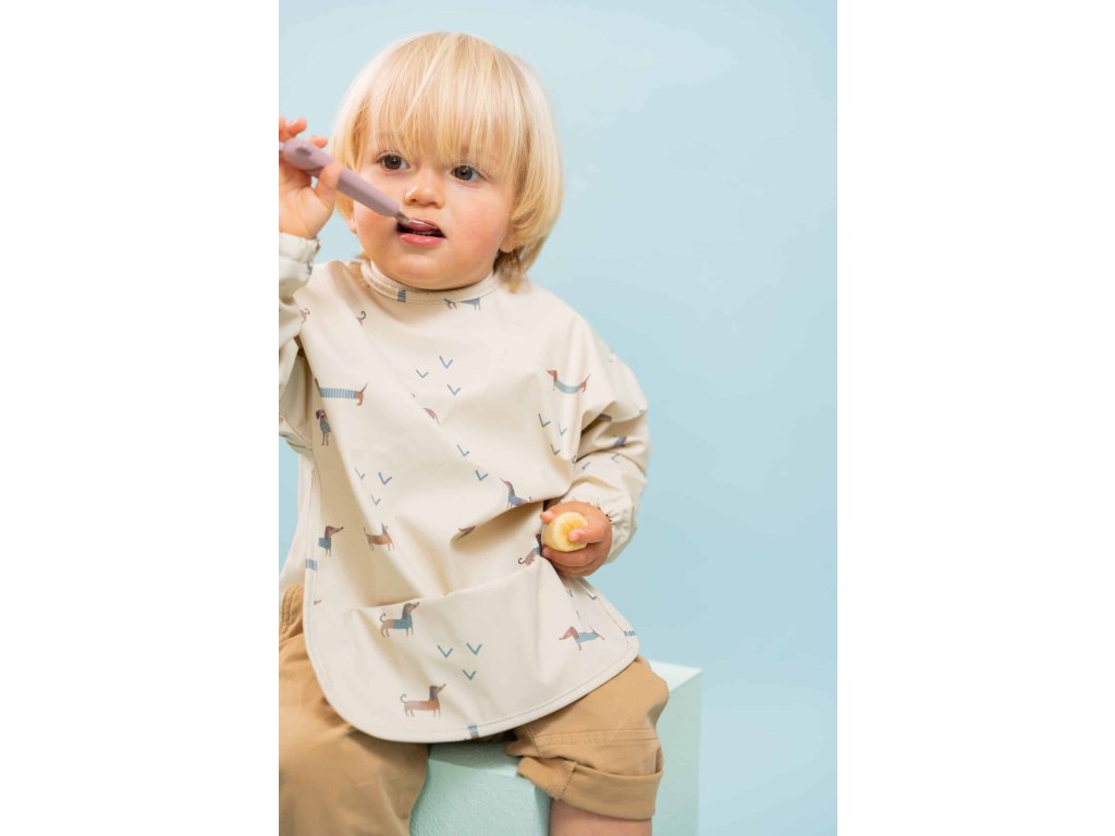 Podbradník je vyrobený z nepremokavej tkaniny, ktorá sa ľahko čistí, odoláva väčšine škvŕn a pachov. 100% recyklovaný Oeko-Tex polyester je nielen vodeodolný, ale je tiež možné ho umývať v práčke. Vodoodpudivý materiál robí tento všestranný podbradník nielen ideálnym na jedenie a kŕmenie, ale je tiež skvelý pre umelecké a remeselné projekty doma alebo v škôlke. Vstavané vrecko na zachytávanie pomáha udržať neporiadok pri jedle na minimum.- Vodeodolný