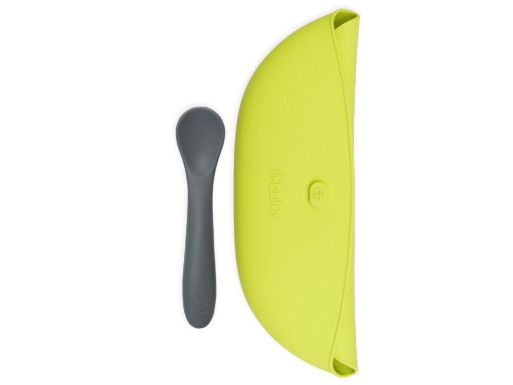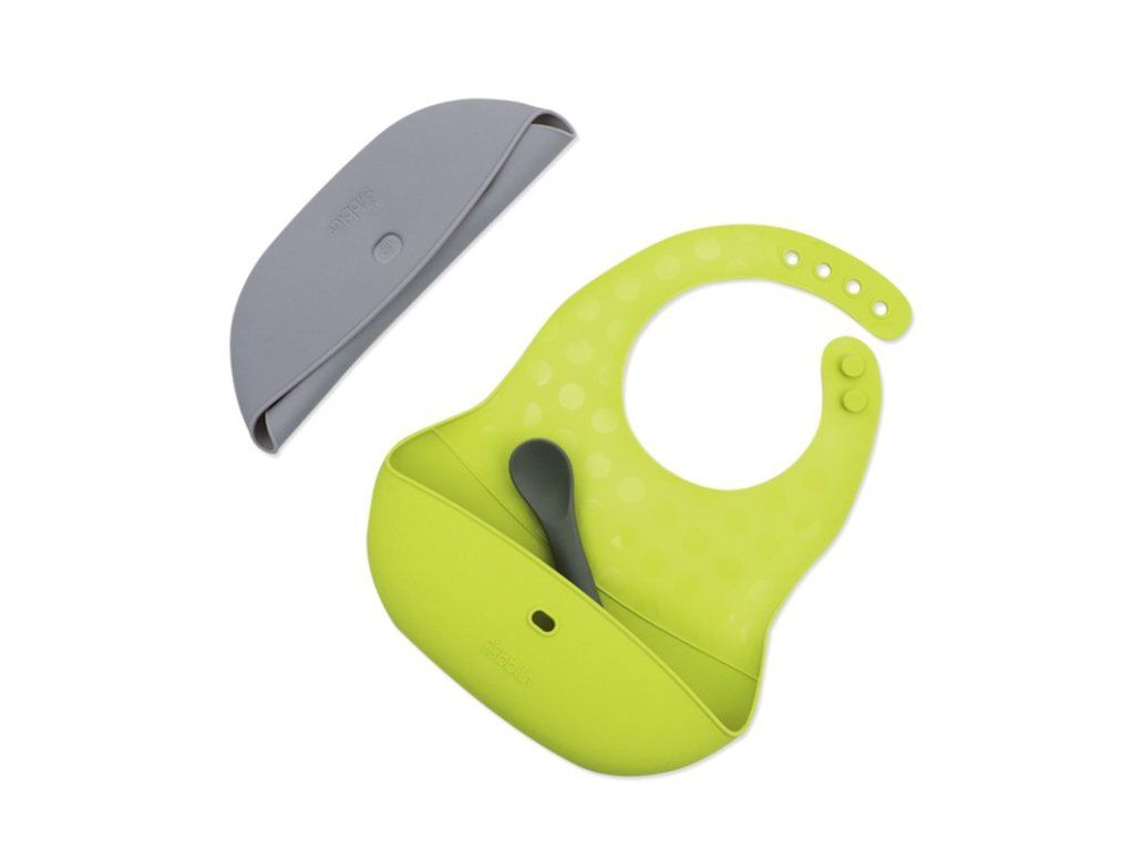 Sada 2ks podbradníkov s lyžičkou Pöket Grey/Lime