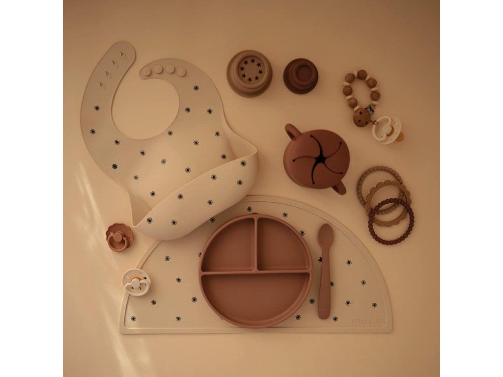 Nerobte s jedlom neporiadok s podbradníkom od Mushie! Kolekcia silikónových podbradníkov od Mushie je zábavná, nadčasová a pestrá v rôznych prevedeniach. Nájdite štýl, ktorý vyhovuje vášmu vkusu a štýlu. Silikónový podbradník udrží vaše dieťa a jeho okolie čisté: hlboké vrecko zachytí jedlo a zabráni tomu, aby vytvorilo neporiadok na podlahe a na detskom oblečení. Zaoblené, vstavané zapínanie na krk zaisťuje pohodlné nosenie. Podrobnosti o mushie silikónovom podbradníku:- Materiál: potravinársky silikón