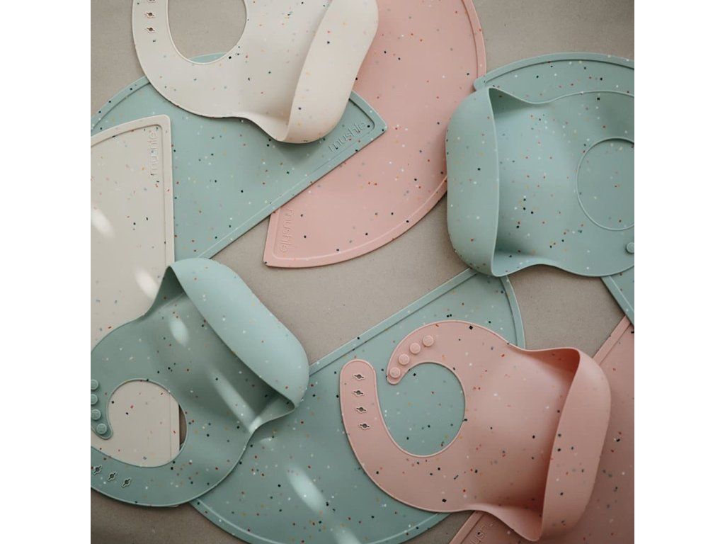 SILIKÓNOVÝ PODBRADNÍK MUSHIE - POWDER PINK CONFETTI