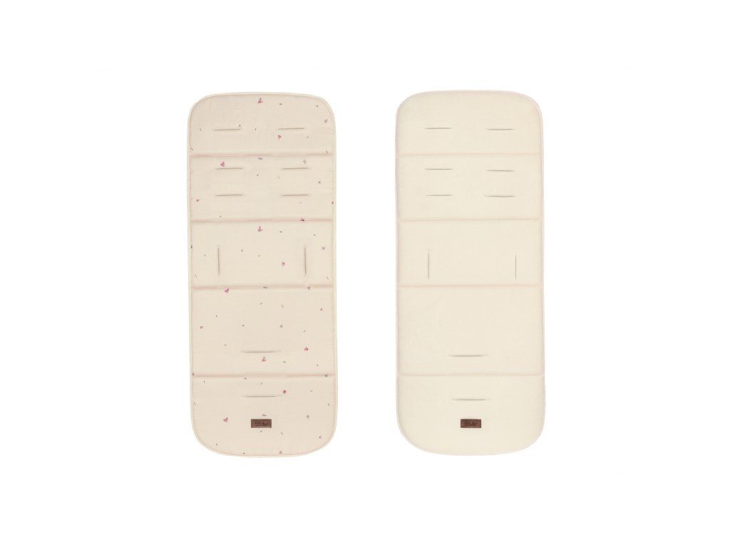 Obojstranná mäkká podložka do kočíka poskytne vášmu dieťaťu pohodlie a tepelný komfort za každého počasia. Vrchná strana je potiahnutá hladkou tkaninou s jemnou potlačou, spodná strana jemným hrejivým fleecom. Otvory umožňujú pretiahnutie 3-bodových aj 5-bodových bezpečnostných pásov kočíka.