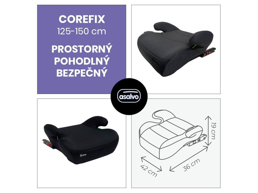 Autosedačka CoreFix, navrhnutá pre deti od 125 do 150 cm, kombinuje bezpečnosť a pohodlie s dvojakou možnosťou inštalácie - isofixom a pásom vozidla - pre stabilné a bezpečné upevnenie. Jej široké, ergonomické sedadlo zaisťuje pohodlnú jazdu, zatiaľ čo odnímateľné a prateľné textílie uľahčujú údržbu. Dokonalá kombinácia pohodlia a ochrany pre každú cestu.