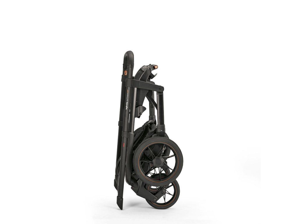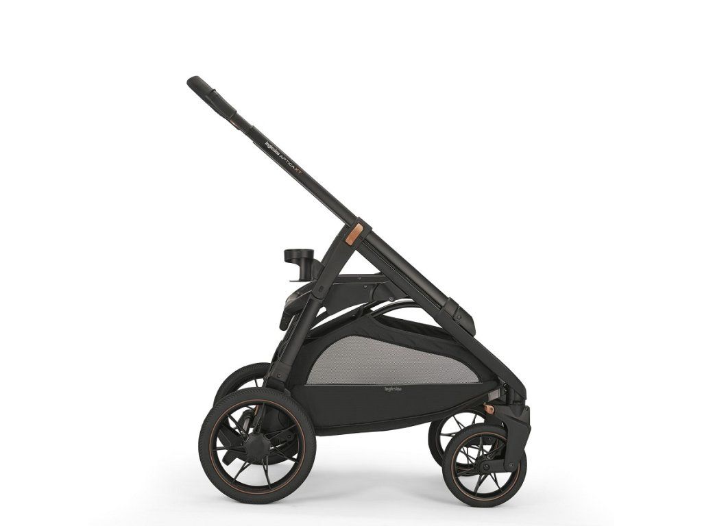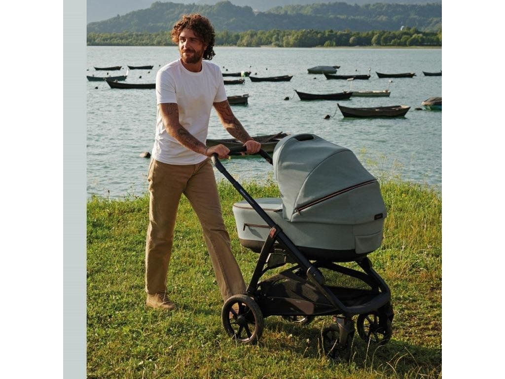 Nový rozmer pohodlia a ochrany Pre podvozok Aptica XT vyvinula Inglesina úplne nové kolesá. Sú väčšie (215 mm predné kolesá a 290 mm zadné kolesá), majú špeciálny tvar, ktorý prispieva k pohlcovaniu drobných rázov od nerovností cesty. Vlastné obruče kolies sú tvorené vonkajšou tvrdou gumou, zaisťujúcou dlhú životnosť kolies, a dvojvrstvovou výplňou z penového polyuretánu, ktorá rovnako ako sofistikovaný tvar kolies pohlcuje rázy a vibrácie od nerovností povrchu cesty. Jazda je potom príjemnejšia pre dieťa aj pre rodičov, ktorým sa do rukoväte kočíka prenáša oveľa menej vibrácií.