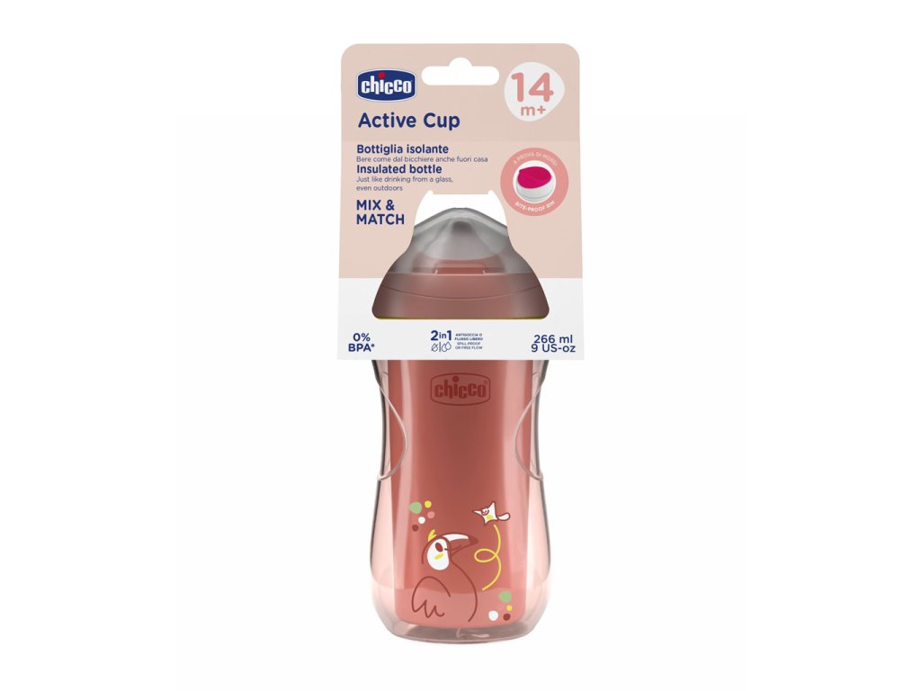 Hrnček Chicco Active termo je ideálny spoločník na pitie bez obáv z rozliatia - aj na cestách! Je navrhnutý tak, aby podporoval prirodzené pitie, a to aj pri aktívnom pohybe. S jeho inovatívnym dizajnom a praktickými vlastnosťami je ideálnym nástrojom pre deti, ktoré sa učia piť samostatne, a to aj mimo domova.Prechod na pitie ako z pohára bez rozliatia
