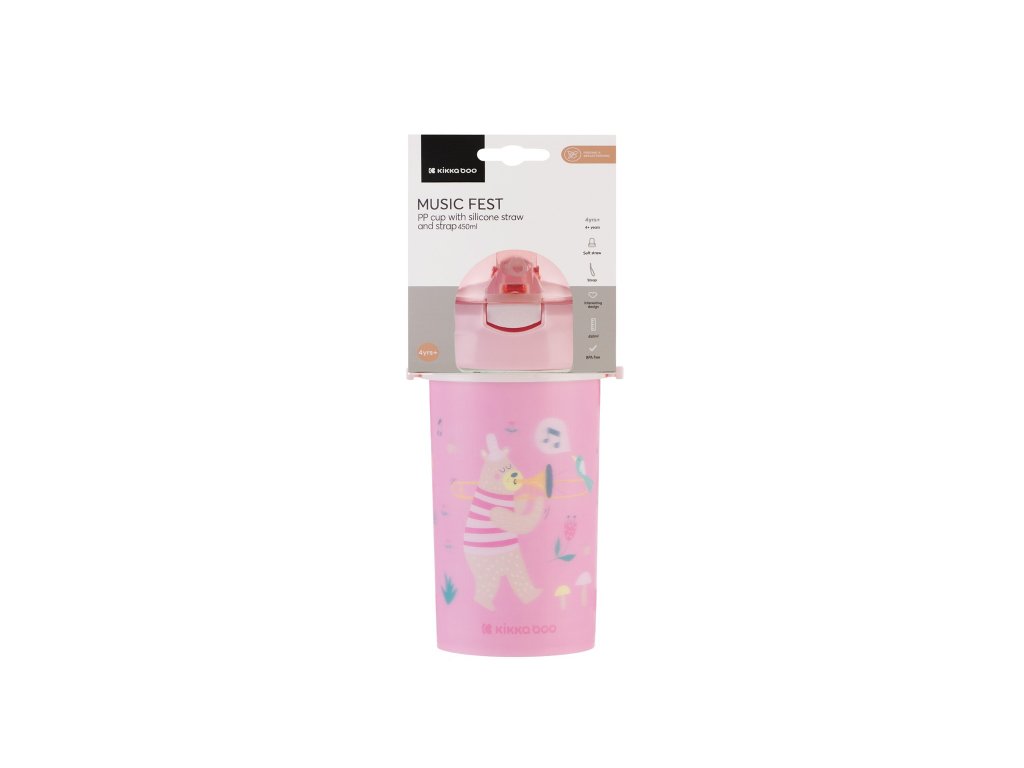 Hrnček so silikónovou slamkou a popruhom 450ml Music Fest Pink