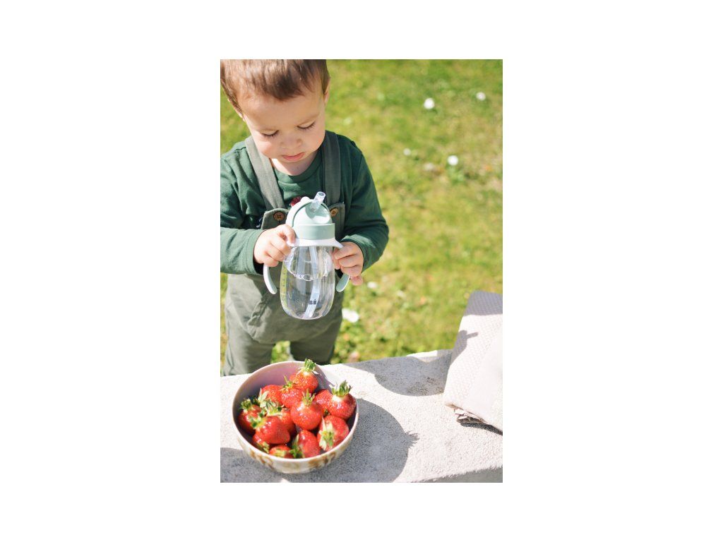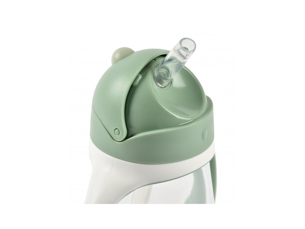 Hrnček so zaklapávacím silikónovým slamkou je ideálny pre použitie doma aj na cestách. Kombinácia posuvného viečka a mäkkej zaklapávacej slamky je zárukou bezpečného aj hygienického prenášania v taške. Ventil v slamke navyše bráni vyliatiu obsahu fľaštičky pri prevrhnutí aj keď viečko nie je zaklapnuté. Odnímateľné držadlá uľahčujú dieťaťu držanie hrnčeka.