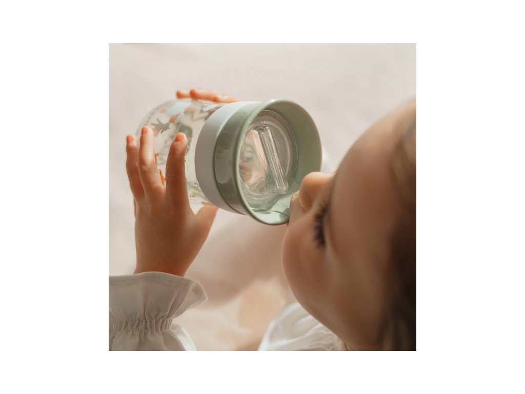 Trénovací hrnček je ideálny pre deti, ktoré sa učia piť z klasického hrnčeka. Silikónové viečko so systémom 360° umožňuje piť z ktoréhokoľvek miesta po obvode hrnčeka bez rizika rozliatia. Tekutina tečie z hrnčeka po naklonení k ústam dieťaťa kontrolovaným spôsobom, takže dieťa na seba pri pití obsah hnku nevyleje. Viečko zároveň umožňuje uzavrieť obsah hrnčeka na bezpečné prenášanie.