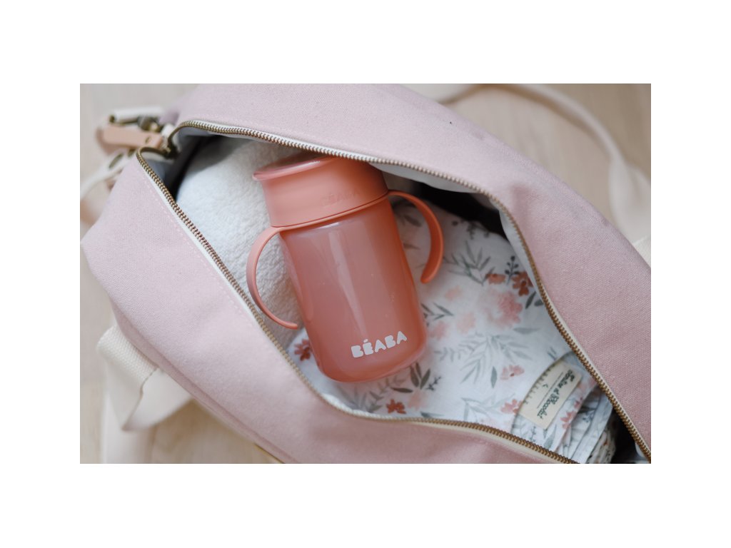 Originálny hrnček pre deti, ktoré sa učia piť z klasického hrnčeka. Membrána so systémom 360° umožňuje piť z ktoréhokoľvek miesta po obvode hrnčeka bez rizika rozliatia obsahu - tekutina tečie z hrnčeka iba vtedy, keď dieťa pritisne pery na okraj hrnčeka. Odnímateľné rukoväte uľahčujú držanie hrnčeka. Obsah hrnčeka pri prenášaní chráni odnímateľné viečko.