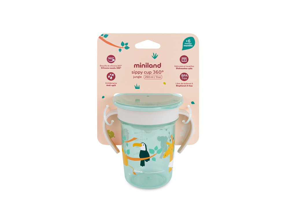 Náučný pohárik Miniland s motívom Džungľa je ideálnou voľbou pre batoľatá od 6. mesiaca života, ktoré sa učia piť samostatne. Je vyrobený tak, aby im tento prechod uľahčil a bol zároveň bezpečný a zábavný. Pohárik má ergonomické držadlá, ktoré sú prispôsobené malým rúčkam, čo im zaisťuje pevný úchop.