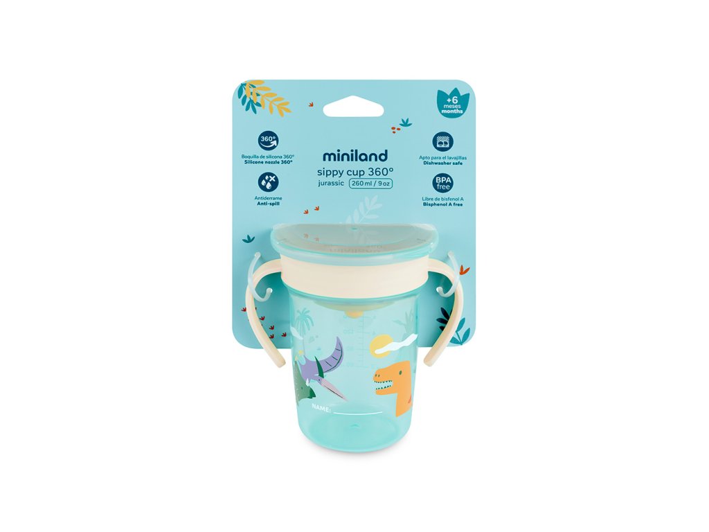 Náučný pohárik Miniland s motívom Jurassic je ideálnou voľbou pre batoľatá od 6. mesiaca života, ktoré sa učia piť samostatne. Je vyrobený tak, aby im tento prechod uľahčil a bol zároveň bezpečný a zábavný. Pohárik má ergonomické držadlá, ktoré sú prispôsobené malým rúčkam, čo im zaisťuje pevný úchop.