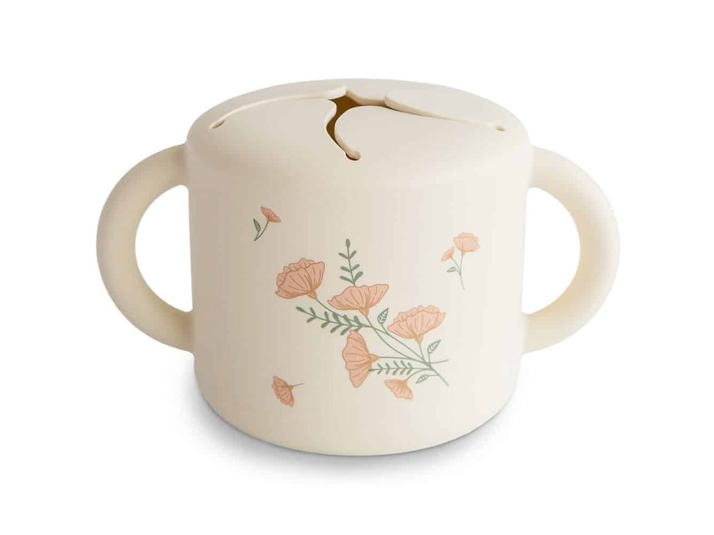 SILIKÓNOVÝ POHÁRIK NA SNACK MUSHIE - PINK FLOWERS