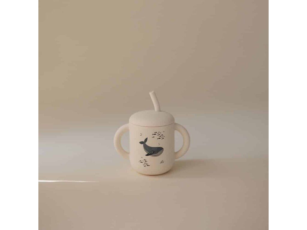 SILIKÓNOVÝ POHÁRIK SO SLAMKOU MUSHIE - WHALES