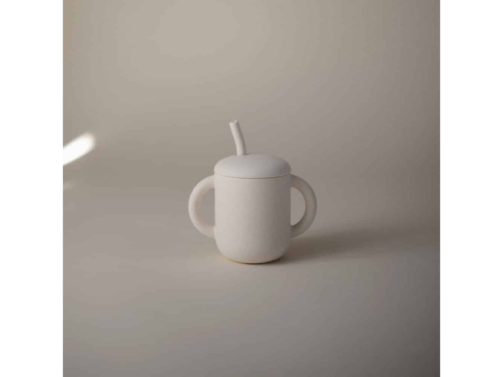 SILIKÓNOVÝ TRÉNINGOVÝ POHÁRIK SO SLAMKOU MUSHIE - IVORY