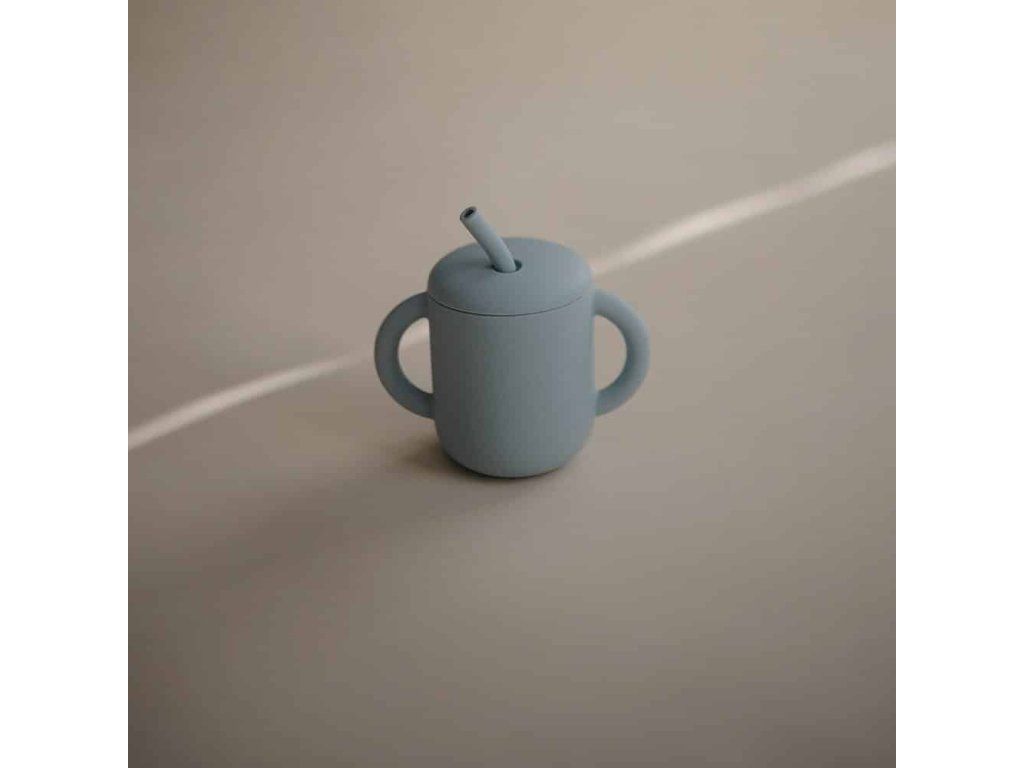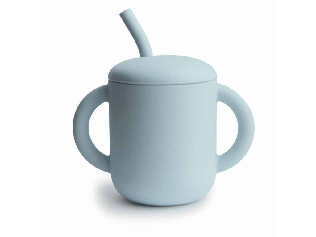 SILIKÓNOVÝ TRÉNINGOVÝ POHÁRIK SO SLAMKOU MUSHIE - POWDER BLUE