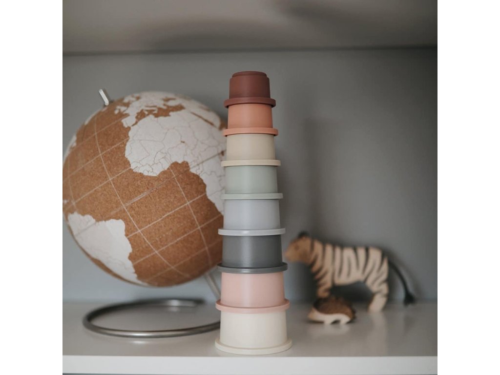 Stohovacie poháriky od Mushie podporujú učenie dieťaťa! Aktivujte svoje dieťa pomocou týchto zábavných a farebných skladacích pohárov v rôznych farbách. Stohovacie poháre pomôžu rozvíjať telo aj mozog a postarajú sa o to, aby hranie bolo zábavné a kreatívne celé hodiny. Stohovacie poháre sú inšpirované vežou "Rundetårn" v Kodani v Dánsku a hračka je súčasťou dánskej kolekcie hračiek Hygge pre deti vo veku 0-3 roky. Podrobnosti Mushie Stacking Cups:- Vrátane: 8 x stohovacích pohárov
