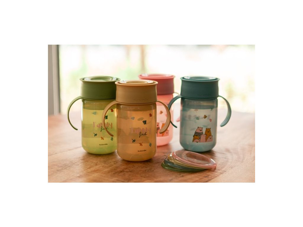 Dôležitým krokom vo vývoji detí je naučiť sa piť bez Vašej pomoci. 360 ° hrnček radu BEAR od značky Suavinex je vhodný pre učenie samostatného pitia pre batoľatá a skvelý pre prechod ku klasickému hrnčeku. S týmto učiacim hrnčekom si vaše dieťa zlepšia svoje schopnosti, pretože hrnček umožňuje piť bez rozliatiu tekutiny z akejkoľvek časti horného okraja vďaka ventilu. Nepriepustné veko zabráni vyliatiu tekutiny pri prevrhnutí hrnčeka a vyteká iba pri kontakte s detskými perami. Hrnček má držadlá vhodná pre drobné detské ruky, ktoré umožnia jej ľahké uchopenie.