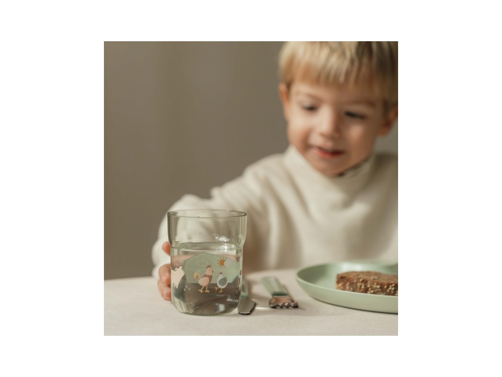 Téglik z priehľadného, extrémne odolného plastu s krásnou potlačou je ideálny pre deti, ktoré sa učia piť z pohára.